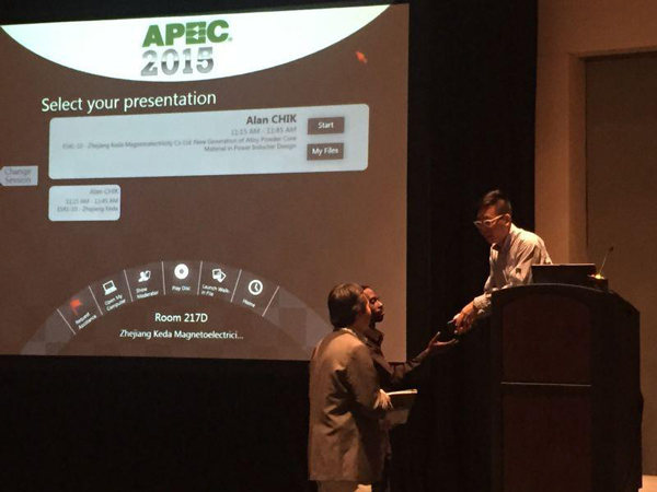 在展會(huì)上我司展示了鐵硅鋁、鐵硅、納米晶、低成本鐵硅、超級(jí)鐵硅鋁等各類磁粉芯產(chǎn)品,與會(huì)的工程技術(shù)人員及相關(guān)人士對(duì)我司產(chǎn)品產(chǎn)生了濃厚的興趣,紛紛來我司展位與我司人員咨詢探討。3月18日中午,我司駐香港辦事處技術(shù)銷售經(jīng)理Alan在展會(huì)會(huì)議中心進(jìn)行了有關(guān)我司納米晶磁粉芯(NanodustCores)的演講。納米晶磁粉芯是我司開發(fā)的新型磁性材料。產(chǎn)品在擁有較高的Bs值的同時(shí),保持了良好的DC-bias特效,并且降低了產(chǎn)品磁芯損耗。相對(duì)于傳統(tǒng)的鐵鎳磁粉芯、鐵鎳鉬磁粉芯,產(chǎn)品調(diào)整了原材料降低了成本,同時(shí)提升了產(chǎn)品性能。產(chǎn)品應(yīng)用極為廣泛,在高性能服務(wù)器電源,大功率工業(yè)電源、UPS、光伏太陽能等行業(yè)都有很好的應(yīng)用市場。客戶使用此產(chǎn)品后一致認(rèn)為效率得到有效提升,具有極高的產(chǎn)品性價(jià)比。在會(huì)后,在場觀眾與Alan針對(duì)產(chǎn)品性能、成本、應(yīng)用開發(fā)、市場等方面進(jìn)行積極討論。